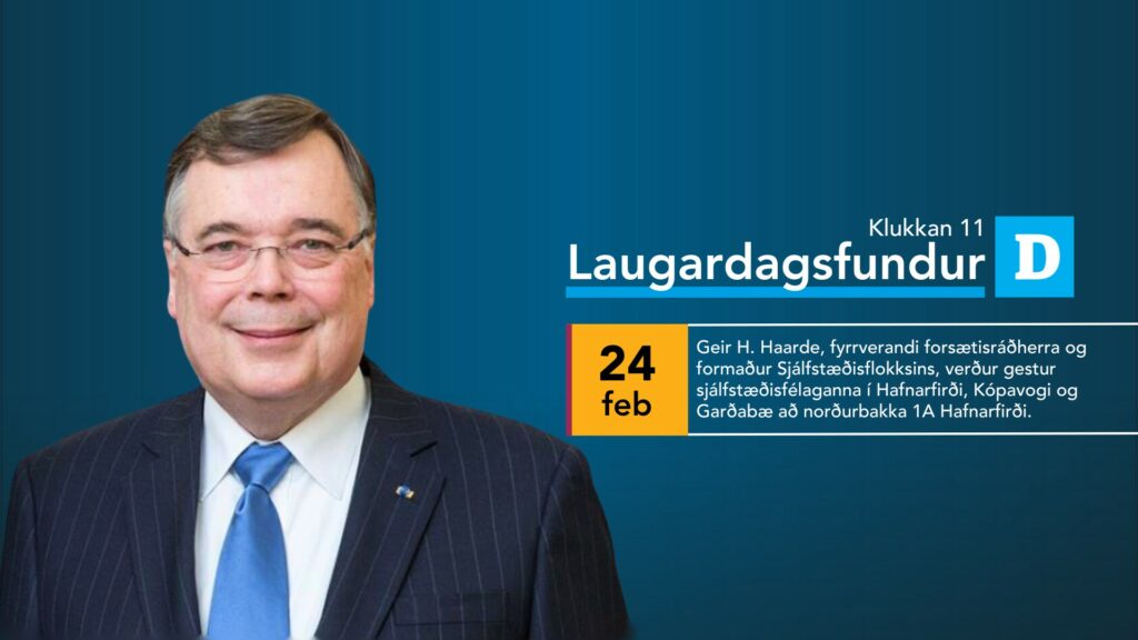Geir H. Haarde, fyrrverandi forsætisráðherra og formaður Sjálfstæðisflokksins,verður gestur sjálfstæðisfélaganna í Hafnarfirði, Kópavogi og Garðabælaugardaginn 24. febrúar kl. 11:00 á