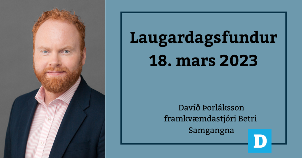 Laugardagsfundur 18. mars 2023 | Facebook Davíð Þorláksson, framkvæmdastjóri Betri samgangna ohf.kynnir aðdragandann að gerð Samgöngusáttmálans og stöðu verkefna hans.