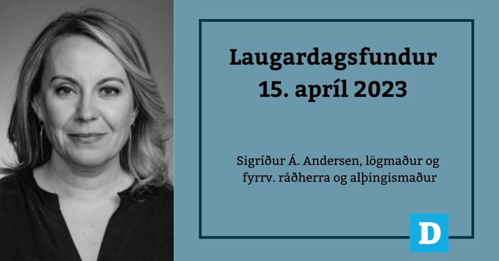 Laugardagsfundur 15. apríl 2023 | Facebook Sigríður Á. Andersen, lögmaður, fyrrverandi dómsmálaráðherra og alþingismaður,verður gestur okkar á laugardaginn komandi, með
