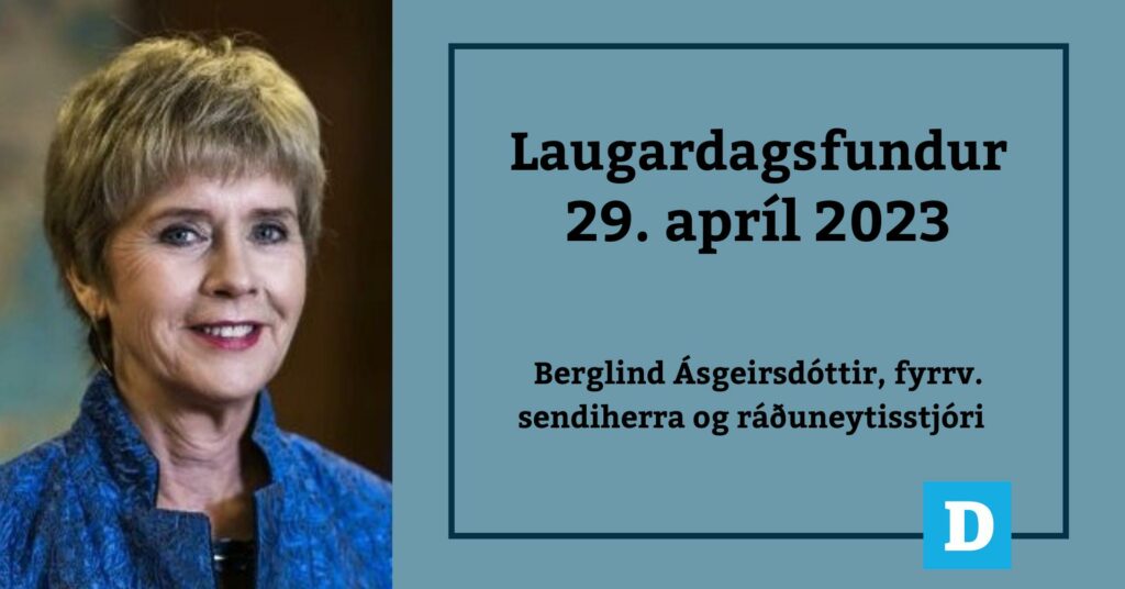 Laugardagsfundur 29. apríl 2023 | Facebook Berglind Ásgeirsdóttir, fyrrverandi sendiherra og ráðuneytisstjóri,verður gestur okkar á næsta laugardagsfundi. Berglind mun fjalla