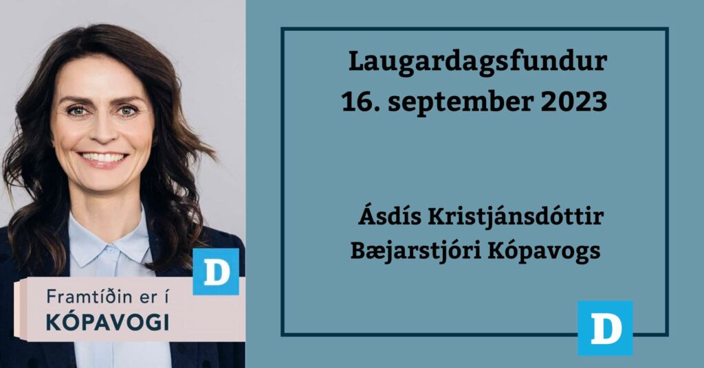 Laugardagsfundur | Facebook Ásdís Kristjánsdóttir, bæjarstjóri og oddviti Sjálfstæðisflokksins í Kópavogi,ásamt bæjarfulltrúum flokksins, fer yfir helstu verkefni vetursins. Fundurinn er