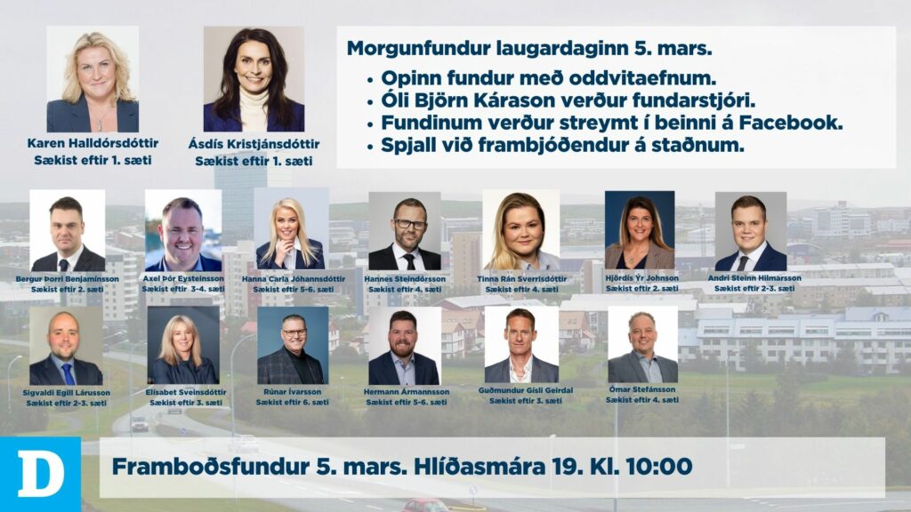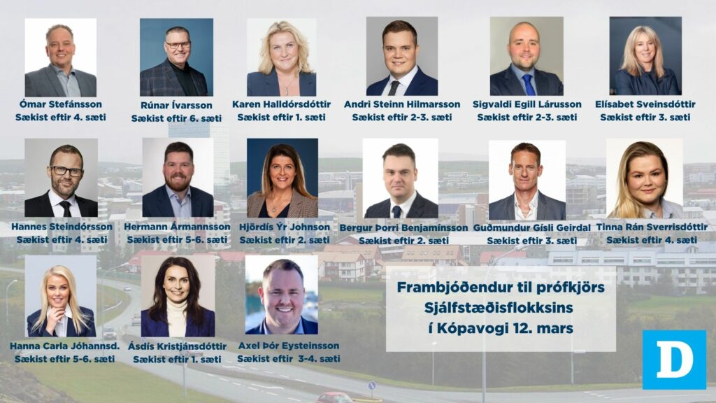 Kynning á öllum frambjóðendum: HÉR Laugardaginn 19. febrúar kynna átta frambjóðendur af fimmtán sig og áherslur sínar, í Hlíðasmára 19.
