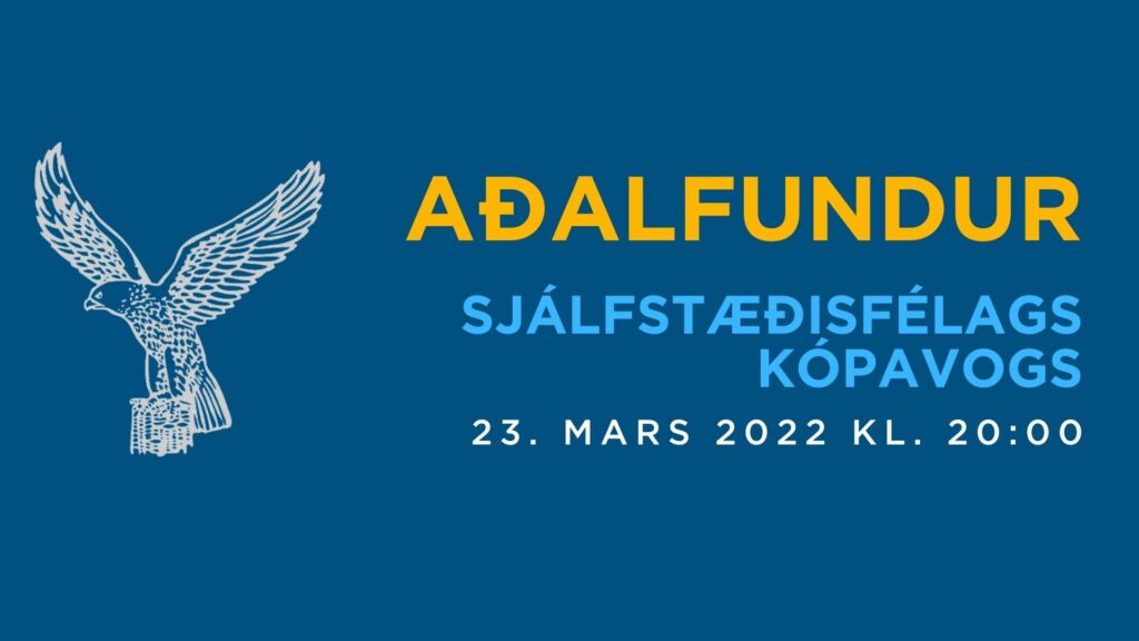 Aðalfundur Sjálfstæðisfélags Kópavogs verður haldinn 23. mars kl 20:00 að Hlíðasmára 19. Dagskrá: 1. Skýrsla stjórnar 2. Endurskoðaðir reikningar félagsins lagðir fram til